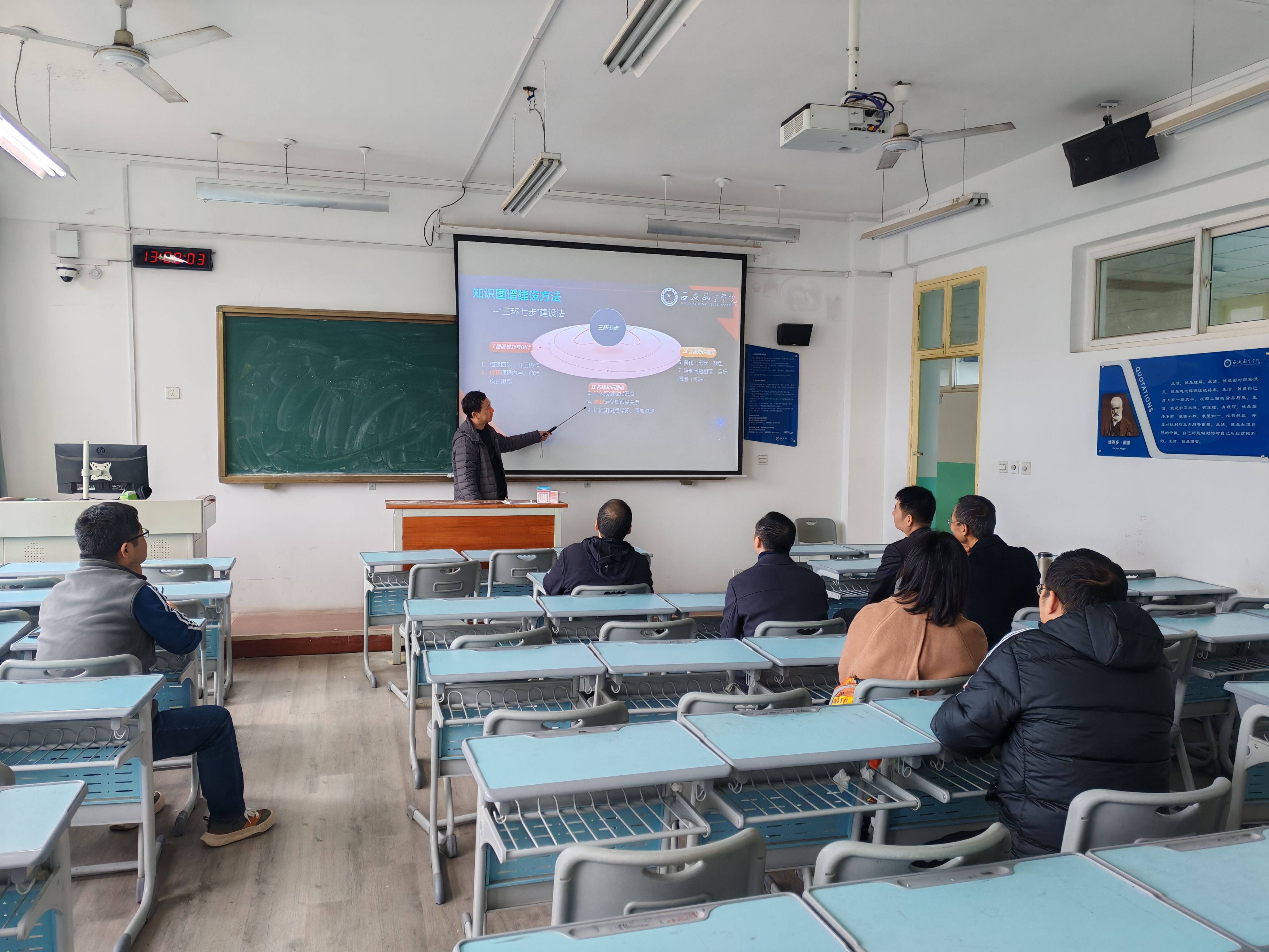 11月18日,基础教研室在阎良校区教学楼1314教室举行了知识图谱课程建设经验交流研讨会。会议聚焦知识图谱在教学中的应用,旨在探讨课程知识图谱建设经验,进一步提升本科教学质量与水平。会议由基础教研室主任赵东波主持,教研室全体教师参会。