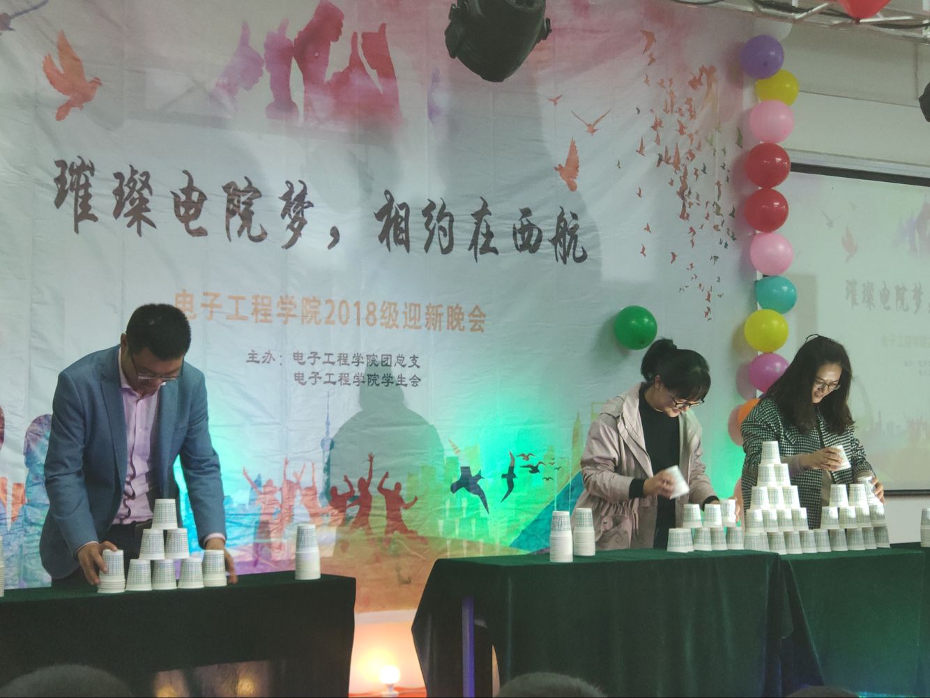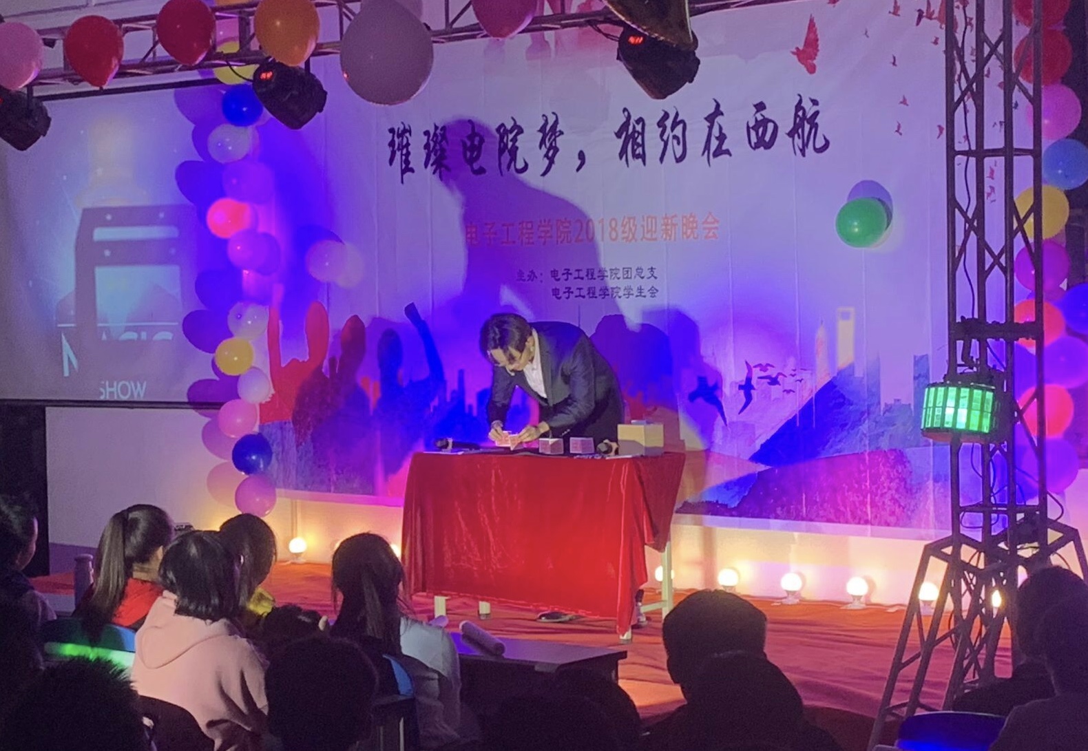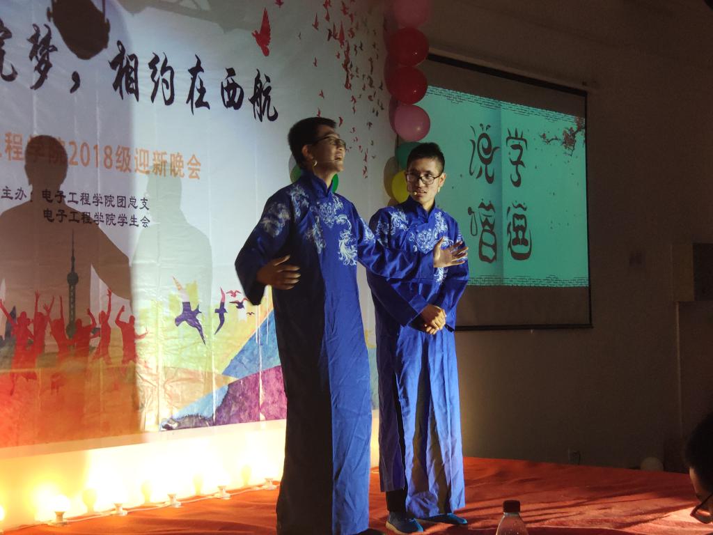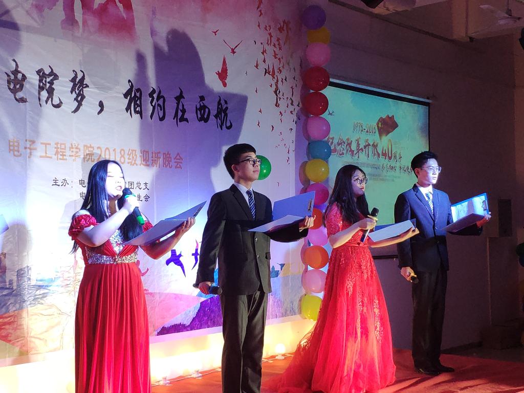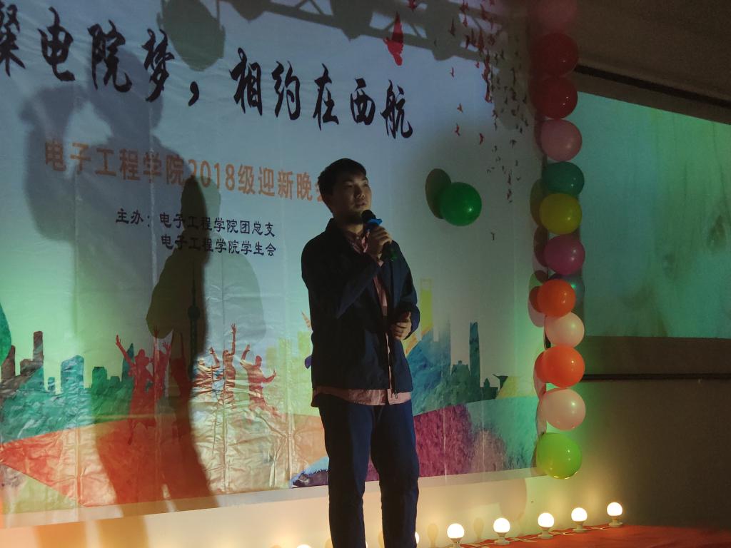 流光溢彩迎新夜,心心连新齐飞扬。2018年10月30日晚19:00,电子工程学院主题为“璀璨电院梦,相约在西航”的2018级迎新晚会于阶梯五教室拉开帷幕。pg游戏电子模拟器院长杨勇、学生管理科科长孙护军、团总支书记肖静、年级辅导员庄思、杜阳宇、史姗姗、机械工程学院团总支书记张乐、材料工程学院团总支书记晋瀑颜、能源建筑学院赵莉老师以及各位学生组织代表出席此次晚会。
