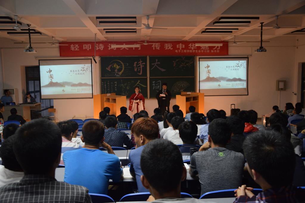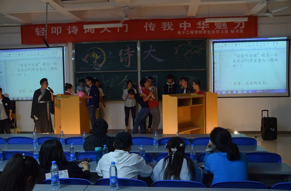 中华民族的传统文化源远流长、博大精深。经典古诗文作品是中华民族的瑰宝,更是中华民族精神品格的真实写照。为进一步弘扬中华民族传统文化,让学生接受传统经典的洗礼,打造书香校园文化氛围,5月9日晚,pg游戏学生会在阶梯二教室进行了诗词大赛的总决赛。