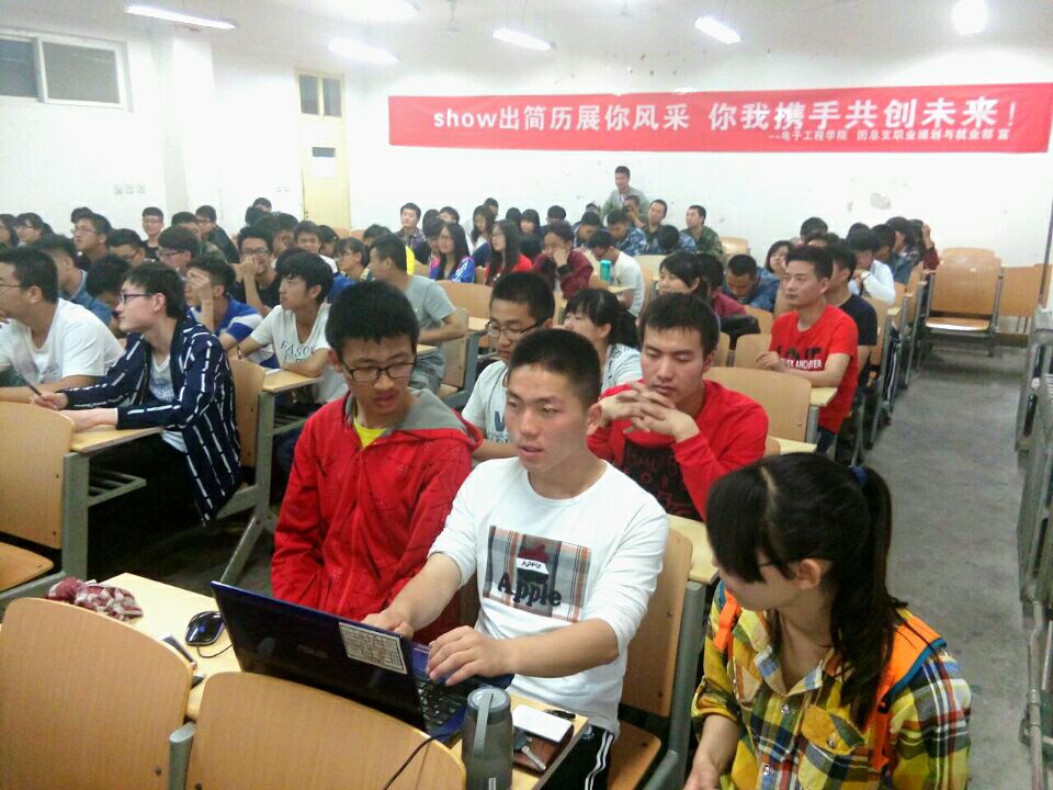 4月26日晚上19:00,在阎教楼1336自习室举行了由pg游戏电子模拟器职业规划与就业工作部主办的pg游戏电子模拟器第一届简历大赛。本次大赛邀请到了pg游戏电子模拟器大三本科辅导员庄思老师,大二专科辅导员张小妹老师,大一士官班教官敬超凡老师,以及大四已经与知名公司签约的田宇、冯雄博等几位学长作为嘉宾评委。pg游戏电子模拟器大一各班学生代表参加了此次大赛。