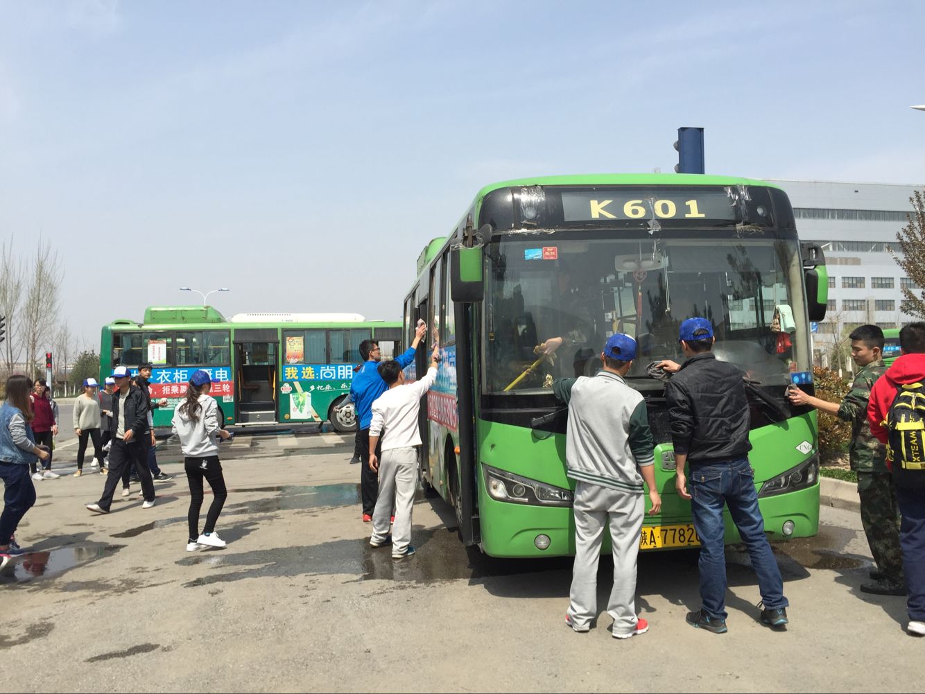 温暖的阳光中流动着清凉的微风,让人的心情愉悦、舒爽了许多。中午1点,所有学员准时齐聚在学校门口,按照事先分配的任务开展活动,清洗位于学校周边的四辆公交车。这些公交车经过长年累月的使用,已经积满了灰尘,所有学员都积极认真的擦拭每一辆车,坚持不留一处卫生死角。大家用自己的行动传递着助人为乐的高贵品格,用心去品味和体验雷锋精神的精髓所在。