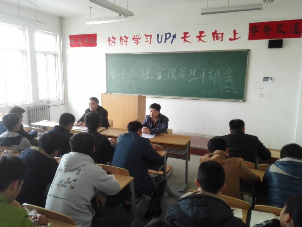 会议开始,庄思老师首先就学生干部的学习带头作用与工作方式向在座同学提了几点要求,强调学生干部在处理问题的过程中应认真,稳重,给学生做好表率;孙护军老师在学生干部的日常事务管理与工作态度方面做了着重强调,教育在座学生干部作为管理者处事的具体方法以及在处理学生工作中的思想态度。在座同学都能仔细听讲,认真记录,会议起到了良好的效果。
