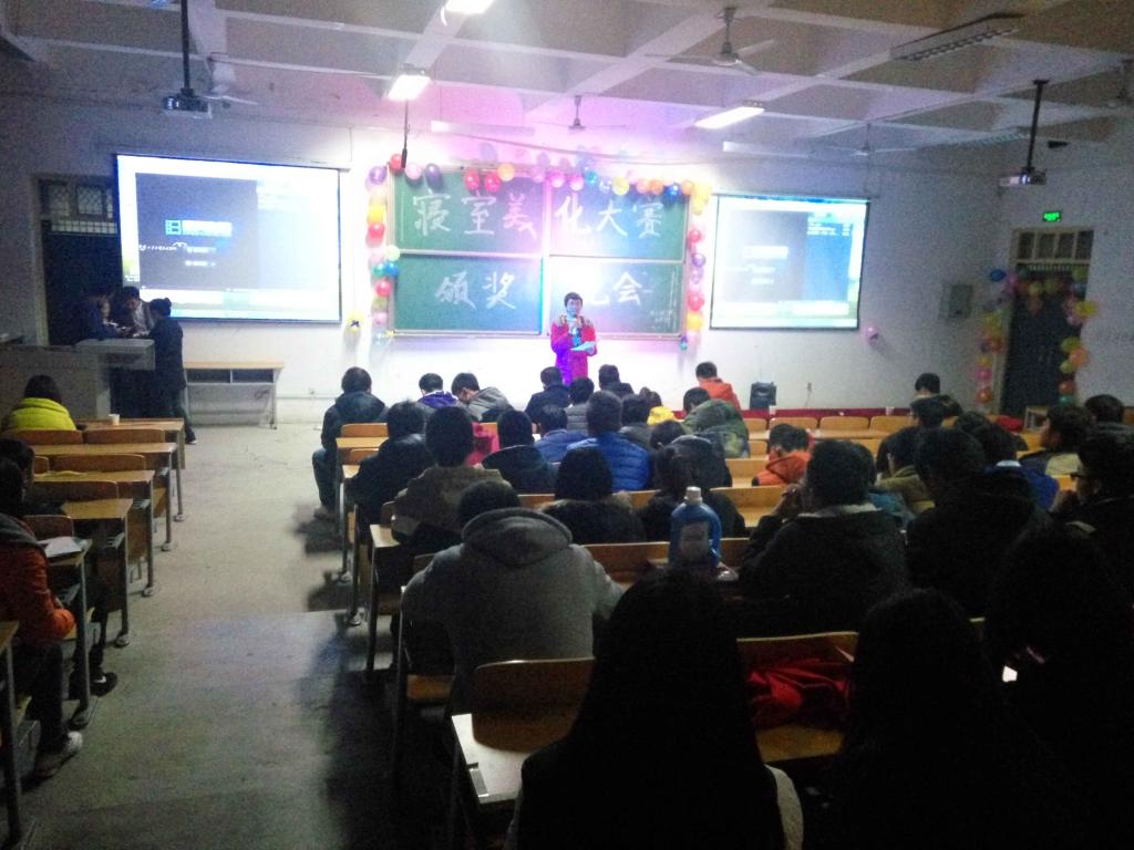 晚会在令人赏心悦目的歌舞中开始,首先,主持人通过视频向大家展示了获奖宿舍的风采;然后由嘉宾向获奖宿舍颁发了证书和奖品,随后获奖宿舍舍长发表了获奖感言;生活部部长对活动进行了总结,他表示:比赛很圆满的结束了,大部分宿舍都很优秀,但由于还有一部分宿舍没有参与比赛,他深感遗憾。他希望在这次活动过后,所有的同学都能把宿舍当家来看待,来爱护。最后,高蕾老师进行补充总结并应大家邀请献歌一首,活动宣告结束。