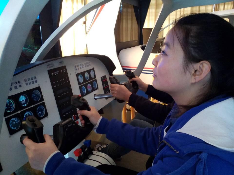这次志愿活动分为两个环节:志愿者学习与体验和为西安旅游团作志愿服务。抵达航空馆后首先由馆内工作人员王妮同志向志愿者介绍了航空馆的基本结构及一些在航空馆工作所需了解的安全注意事项,然后志愿者来到了飞行体验舱,有序地轮流进行了现场操作,亲身的感受了航空工作的精密和高难度,同时学到了很多书本上不曾出现的知识。最后王妮同志总结了模拟飞机操作的系统流程。下午两点,旅游团前来,在工作人员的带领下志愿者开始了正式的志愿工作。