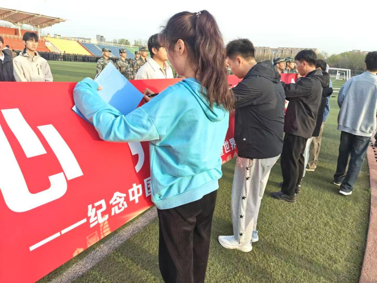 随后,现场开展了“国旗映初心,青春担使命”横幅签名活动。同学们有序来到横幅前,郑重地签下自己的名字。一笔一划,饱含着他们对党的忠诚与为人民服务的坚定决心。每一个名字,都是一份承诺,彰显着新一代青年的责任与担当。