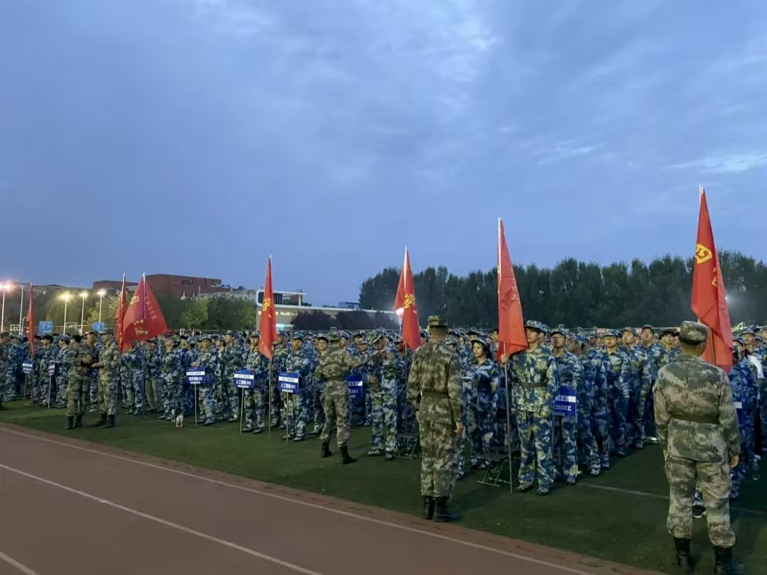 教官们先引导新生按学院列队,再通过点名、调整站位,一点点将分散的队伍梳理整齐。“大家往中间靠一靠,对齐前面同学的肩膀”“脚步轻一点,注意保持间距”,指令声里,新生们慢慢调整着姿势,原本略显松散的队列,渐渐变得整齐起来。夜色里,年轻的身影在灯光下格外鲜活,当最后一个联队完成编排,整个操场仿佛变成了一片即将启航的“小军营”,等待着正式训练的号角吹响。