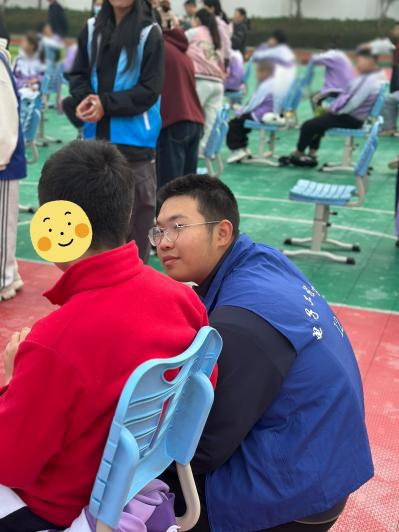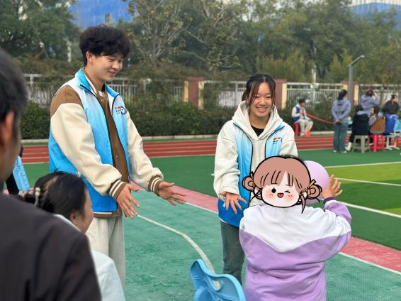活动中,pg游戏学生首先参观了润心学校多个功能室,感受孩子们的学习和康复日常,学习与特殊儿童沟通的技巧与耐心,倾听他们从抗拒交流到逐渐接纳他人的成长故事。在学校运动会期间,pg游戏学生以志愿者身份化身“暖心护航员”,主动承担多项工作:在开幕式上,由志愿者组成的护旗方阵和彩旗方队,向孩子们展示了大学生的青春风采;在运动会场上,志愿者们主动陪伴,牵手他们走向赛场,用呐喊与掌声为每一次努力尝试加油鼓劲,为每一个小小的进步真诚夸赞;在等候区里,志愿者们安抚孩子们的情绪,陪伴孩子们做游戏,为孩子们整理衣物;在颁奖仪式上,志愿者们热心搬运物资,还为孩子们准备了奖品,在便利贴上写下寄语,为孩子们献上最真诚的鼓励和祝福。
