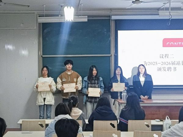 会上共进行了四项议程:各部门部长围绕年度工作成果、部门职能与未来规划展开详细总结,用具体案例让新干事直观了解心灵驿站的工作脉络;站长全面复盘过往学年工作亮点与成长空间,为新学年发展指明方向;会议现场,指导老师还为上届部长们颁发聘书,感谢他们的辛勤付出与责任担当;最后,指导老师康乃馨讲话,她表示要在新的学年,继续完善心灵驿站职能,为全院各级学生提供缓释压力、积蓄能量的平台,鼓励新干事们以热爱为帆、以责任为桨,在集体中成长、在工作中进步。