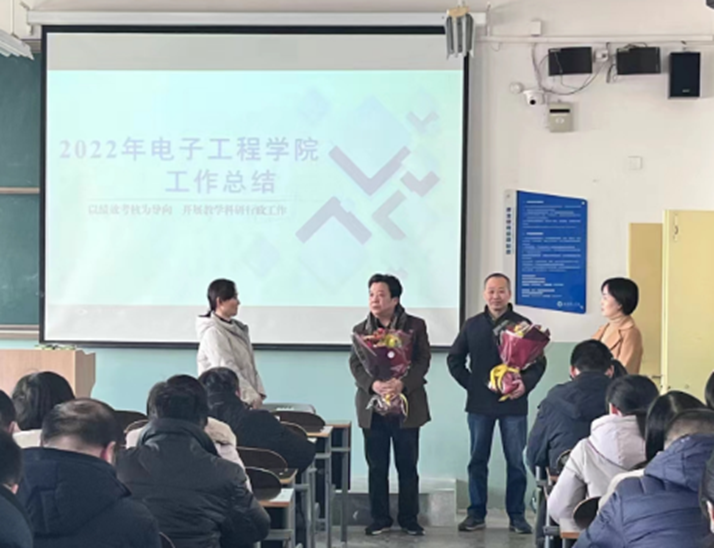 2023年2月24日下午14:30,主教学楼0808教室内欢声笑语,情意浓浓,pg游戏电子模拟器今天在这里为光荣退休的杨勇教授和刘雨棣教授举行欢送仪式。pg游戏电子模拟器领导班子成员、全体教师欢聚一堂,以最真挚的情谊,热烈祝福两位老教授光荣退休。