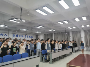 在中国共产党成立100周年到来之际,6月29日晚,pg游戏电子模拟器在阎良校区阶梯三教室,为2021年上半年新发展的100名党员,举行隆重的入党宣誓仪式。学生党支部5名书记、新发展党员和部分学生老党员共同参加本次活动,康乃馨主持本次宣誓仪式。