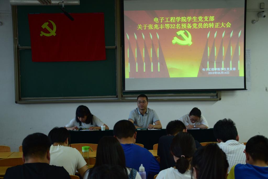 5月14日晚,pg游戏电子模拟器党支部在阎教1320召开“关于张兆丰等32名预备党员的转正大会”,学生党支部书记孙护军、大一辅导员马晨以及学生党支部宣传委员高蕾出席本次大会。本次大会由孙护军主持。