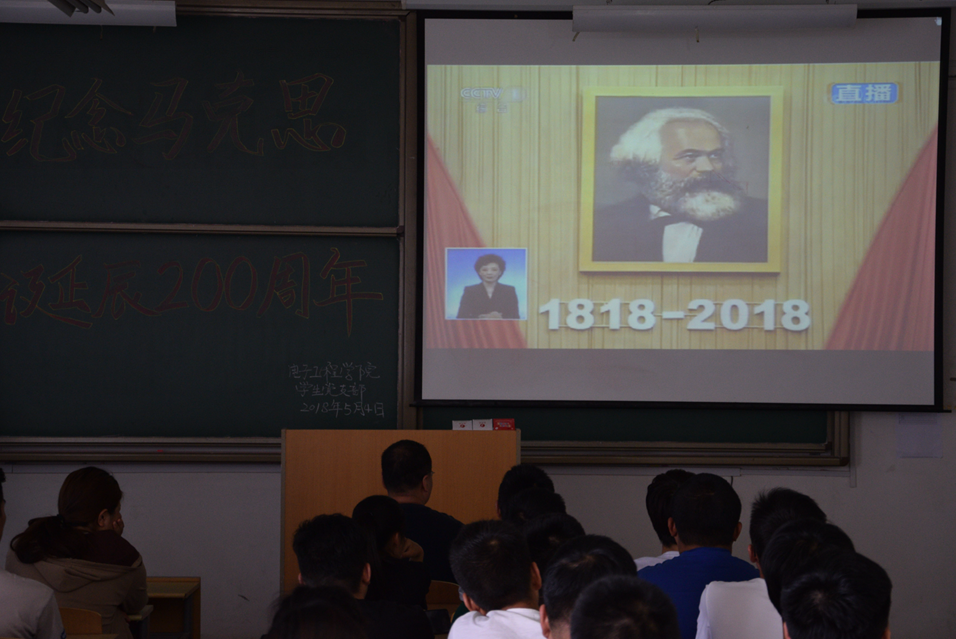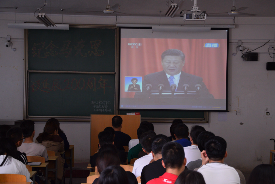 2018年5月4日纪念马克思诞辰200周年大会在人民大会堂举行。习近平总书记出席大会并发表重要讲话。pg游戏电子模拟器学生党支部积极响应,组织全体党员,预备党员以及部分入党积极分子观看学习习近平总书记讲话。