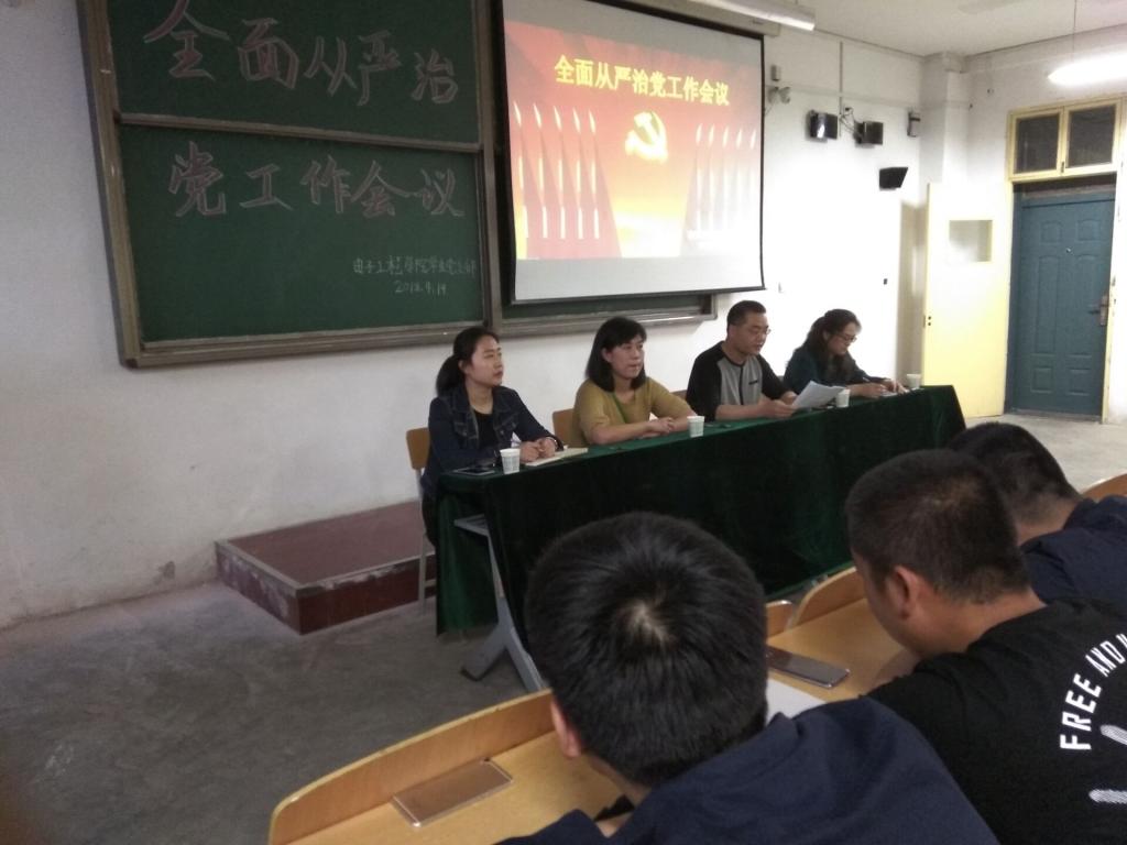 会议一开始,孙护军老师就对党员提出了严格的要求,无论是在工作上,还是在生活上,都要表现出一个党员该有的责任与担当。将全面从严治党的方针与政策深深植根于每一个党员的心中。会议期间,孙护军老师着重强调了党员建设工作的重要意义,使每一位党员都保持先进性,纪律性。同时也对人才培养和高校优化等方面提出了具体的要求。