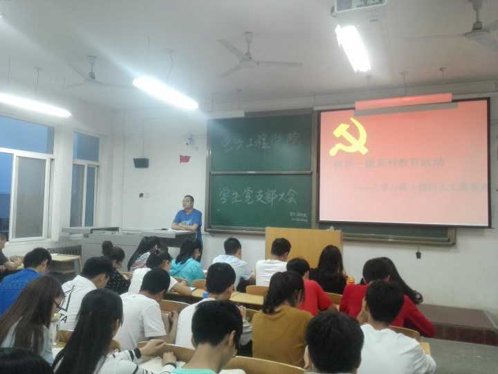 孙护军老师首先从开展“两学一做”活动重要性与如何体现党员先进性两方面为学生党员做了阐述,并结合《中共陕西省委高教工委、陕西省教育厅关于开展向陈士橹同志学习的决定》,详细讲述了陈士橹院士的生平事迹与所获荣誉,强调爱国由爱校开始,作为学生党员应恪尽职守,全力以赴,做好本职工作,襟怀坦荡,严谨好学,厚德仁爱,爱党敬业,迎难而上,去勇敢地探索未知,做一名合格的优秀党员。全体学生党员随后展开学习讨论。