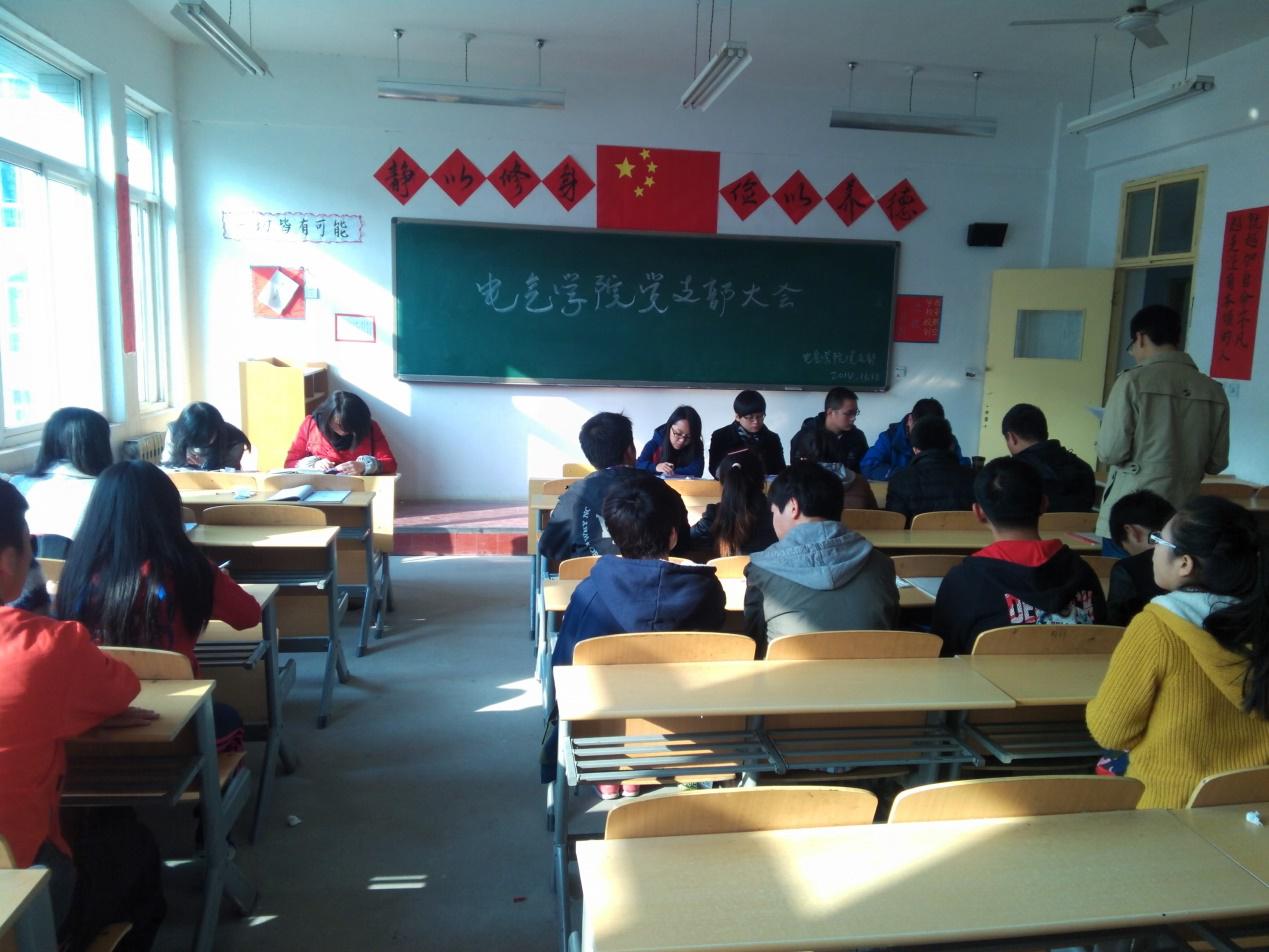2014年11月18日,电气学院在1305教室内召开了学生党支部之预备党员转正及拟发展对象转预备审批大会。本次会议共分两个议程,由任志刚老师主持、电气学院学生党支部成员共同参加。