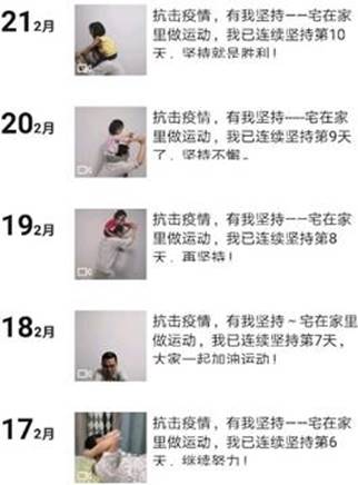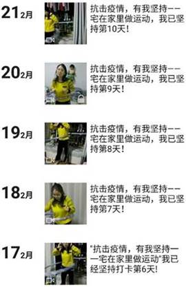 为了响应学校工会“抗击疫情,有我坚持——宅在家里做运动”十天打卡活动,pg游戏电子模拟器全院教职工纷纷积极参与到活动当中,继续在家“动起来”。