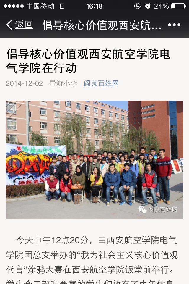以涂鸦这种无拘无束又极富表现性的创作形式来宣扬倡导社会主义核心价值观24个字,使更多的同学融入到活动中,体会通过涂鸦让别人知道自己思想的喜悦,营造很好校园艺术气氛的同时让更多的西航人加入为社会主义核心价值观代言的队伍,更让社会主义核心价值观始终萦绕在pg游戏的上空,构建社会主义的路还在继续,我们携手共进!