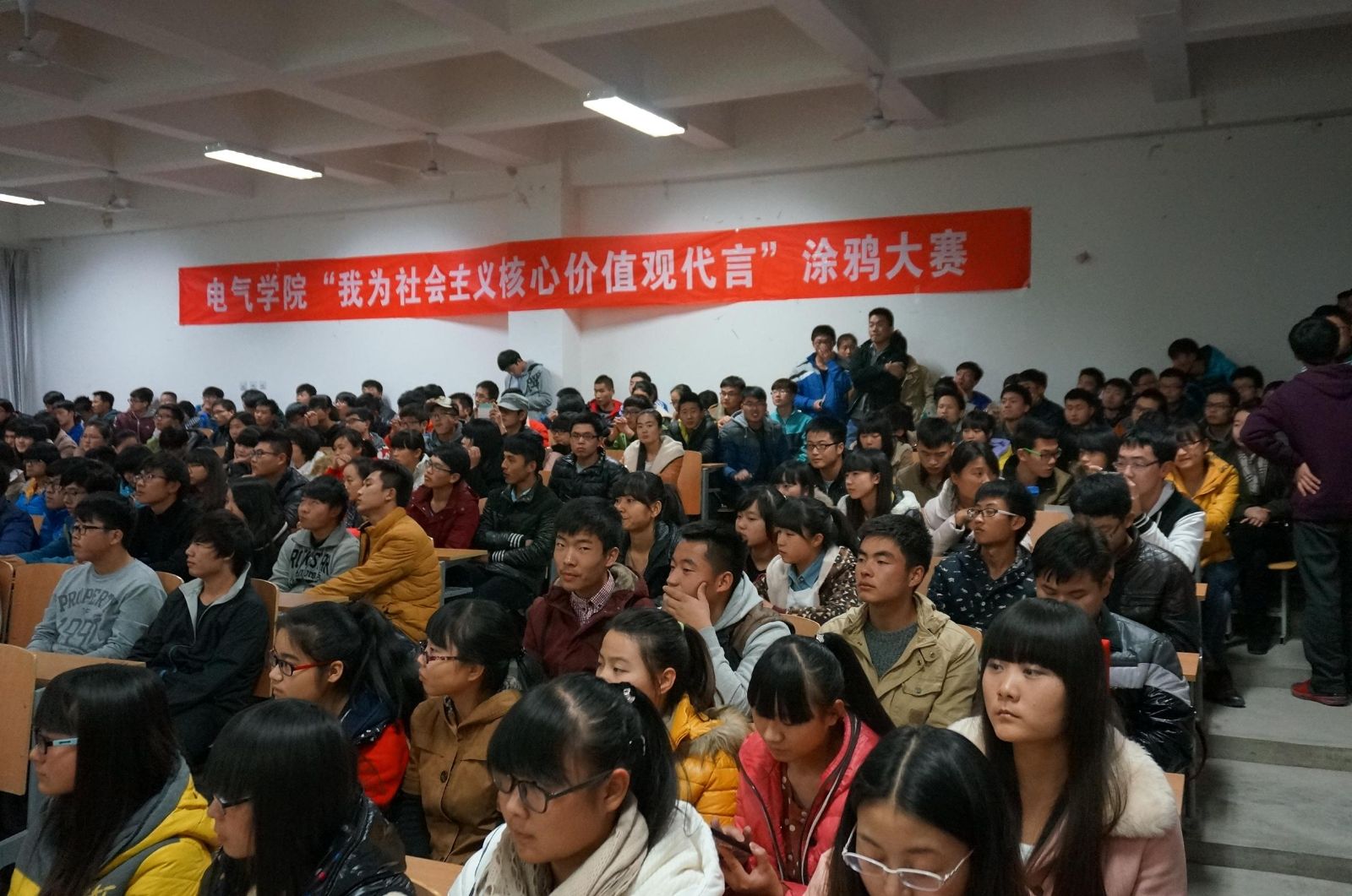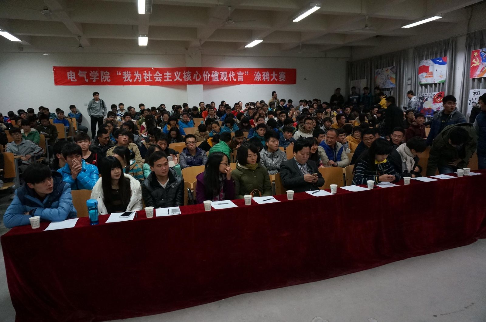 pg游戏团总支积极响应校团委关于“我为社会主义核心价值观代言”活动安排,由pg游戏团总支主办,团总支秘书部和学生会秘书部承办,院团总支宣传部、学生会宣传部和青协中队协办的“我为社会主义核心价值观代言”涂鸦大赛于12月10日晚在我校阎良校区阶五落下帷幕。pg游戏党总支书记、院长杨勇老师,校团委季林健老师、pg游戏团总支书记葛昊老师、殷娇老师、张小妹老师、肖静老师、马晨老师及pg游戏团总支,学生会,心灵驿站学生干部出席本次晚会,第十期入党积极分子以及学生代表参加了本次晚会。
