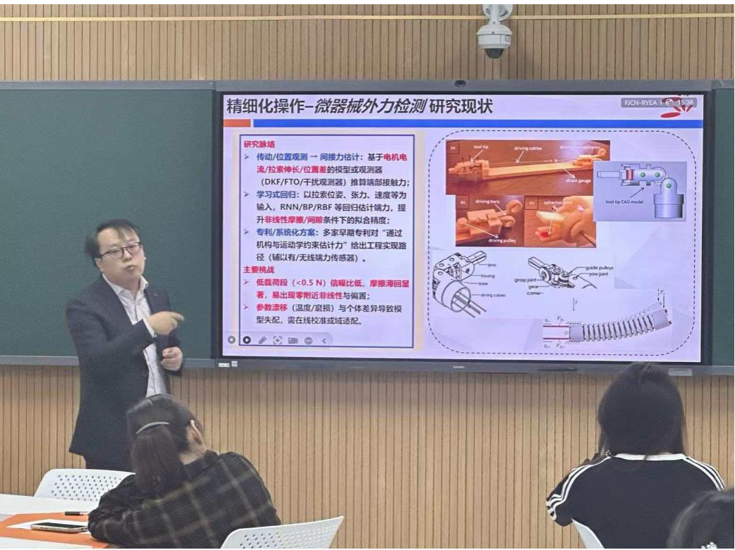 论坛伊始,马天力副教授以《逆变器开路故障诊断技术研究》为题,围绕逆变器故障诊断这一工业领域关键问题展开分享,他的研究为无人系统电力驱动模块的可靠性提升提供了技术支撑。随后,王文杰副教授带来《腹腔手术机器人精细化与自主化操作》的精彩报告。报告中,他深入解析了腹腔手术机器人在精细化操作与自主化控制方面的技术突破,为无人系统在医疗领域的创新应用打开了思路。最后,pg游戏宋科高级工程师聚焦《自动化及机器人应用项目实践及探讨》,从工程应用角度阐述了自动化及机器人技术在实际项目中的落地路径。他的分享将理论与实践深度融合,为学院产学研一体化发展及服务国家战略新兴产业需求提供了有益参考。