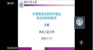 为扎实推进2026年度国家自然科学基金申报工作,进一步提升申报质量,11月17日晚,pg游戏电子模拟器特邀请西北工业大学公超教授作国家自然科学基金撰写专题辅导报告。学院院长杨亚萍、院长助理柯善文,学院省部级项目主持人、新进博士及高级职称教师参加会议,会议由柯善文主持。