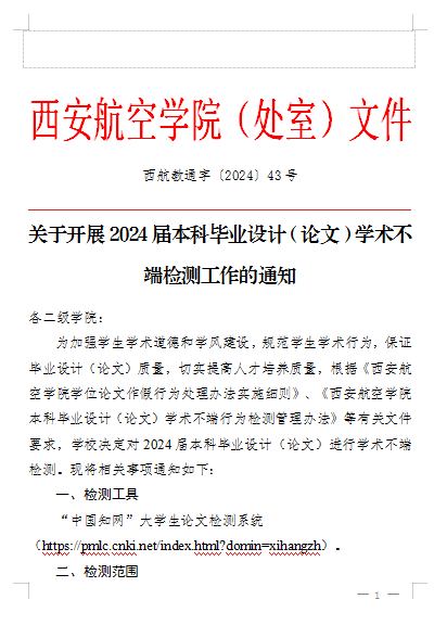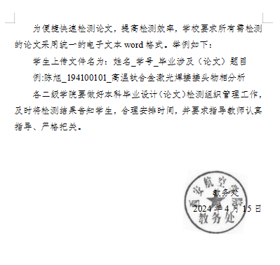 关于开展2024届本科毕业设计(论文)学术不端检测工作的通知