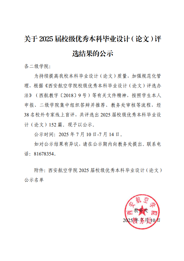 关于2025届校级优秀本科毕业设计(论文)评选结果的公示