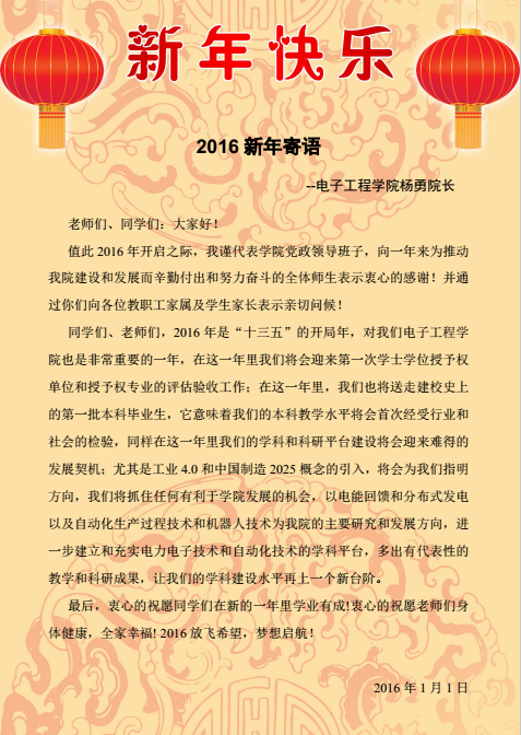 "梦想启航"--2016新年pg游戏电子模拟器院长寄语