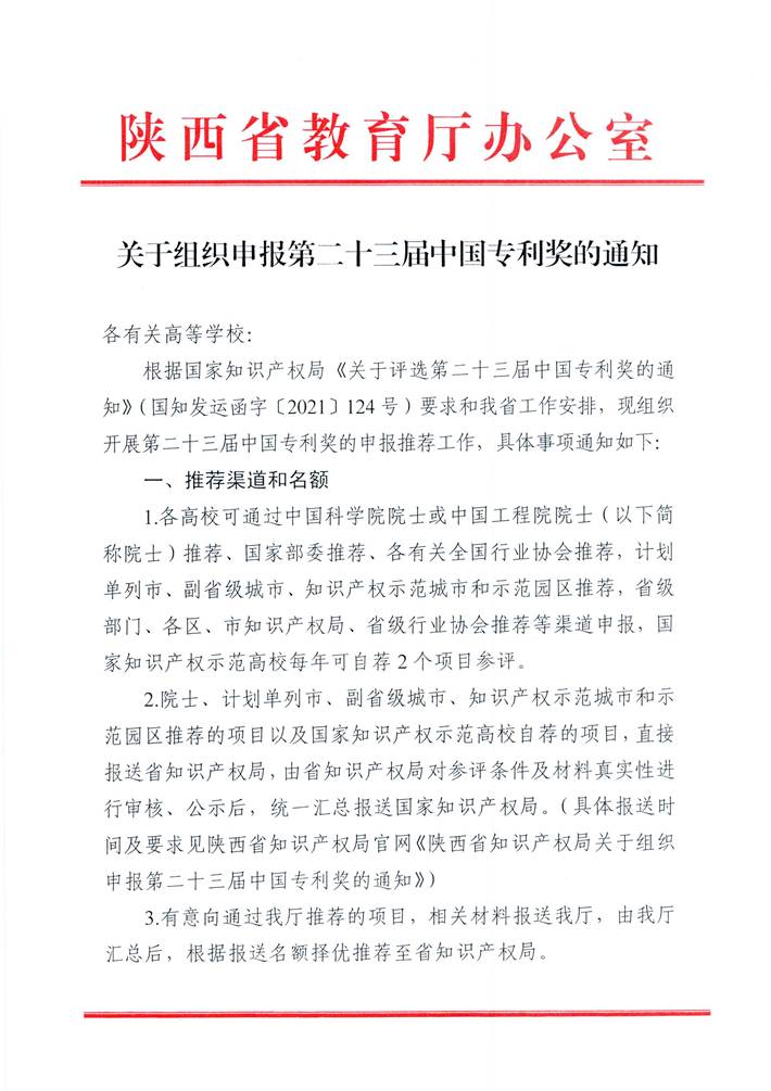 关于组织申报第二十三届中国专利奖的通知