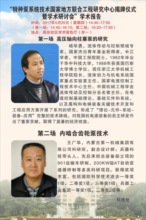 关于举办“特种泵系统技术国家地方联合工程研究中心揭牌仪式暨学术研讨会”学术报告的通知