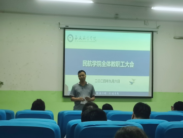 吕毅总结了学院暑假期间各项工作开展情况,介绍了走访调研、校企合作、民航大楼建设与发展有关事项,部署了学院新学期主要工作。希望全体教职工以学院高质量发展为目标,紧跟新形势,推动新发展,表示有决心和信心与全体教职工一起迈上新台阶,走向新未来。