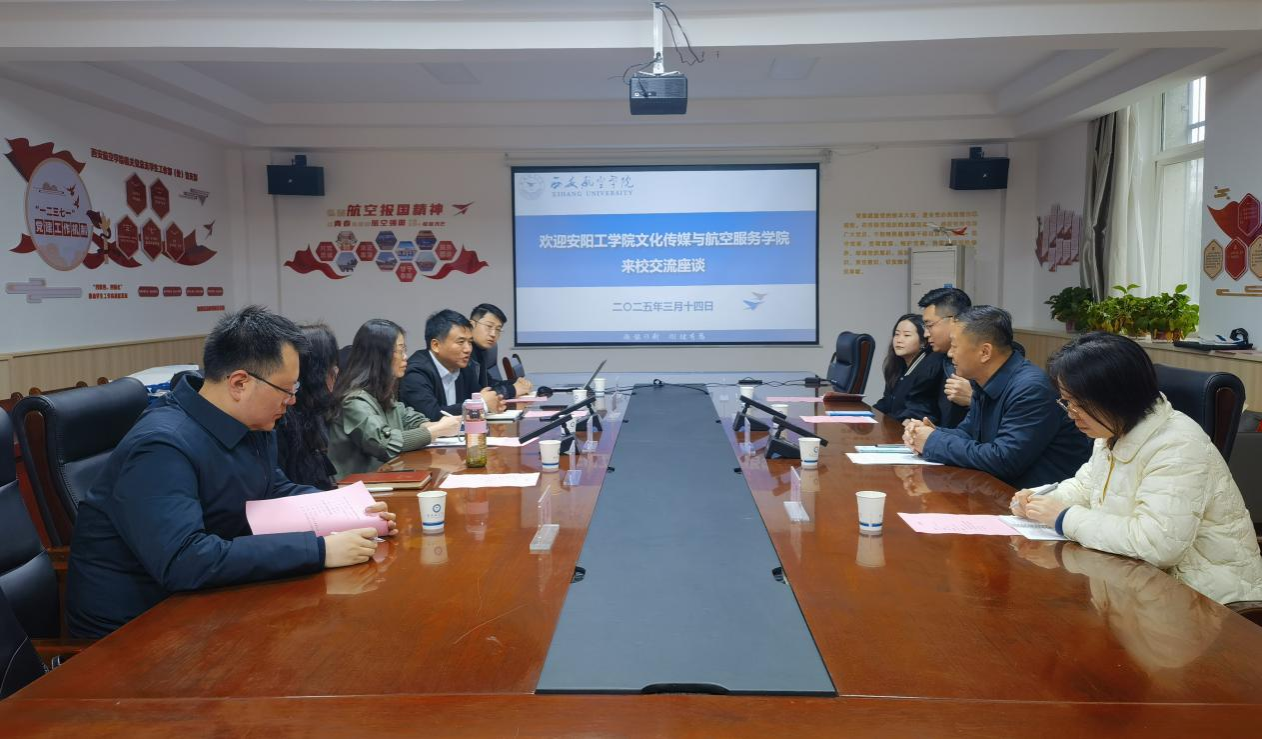 2025年3月14日上午,安阳工学院文化传媒与航空服务学院一行来校调研座谈,座谈会在教学北楼133会议室举行。文化传媒与航空服务学院副院长余锐、文化传播教研室主任王芳、辅导员韦一、教学秘书唐子烨,pg国际电子网站党总支书记丁琦、院长吕毅、副院长卢娜、学工办副主任王宏超、航空服务艺术与管理专业带头人张阳参加座谈。会议由丁琦主持。