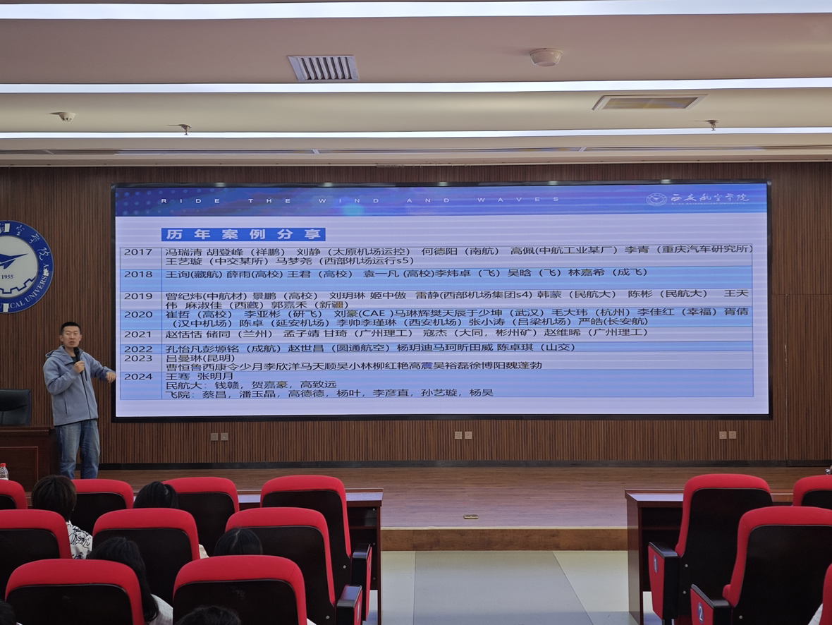 交通运输专业董睿老师结合多年教学与行业经验,从“民航职业发展路径”和“考研院校选择策略”两大维度展开分享。他详细分析了民航相关岗位的就业趋势,并对比“双一流”等高校的报考特点,说明“信息战”的重要性:“精准掌握目标院校的报录比、导师研究方向,是提升录取率的关键。”此外,董睿还展示了往届优秀毕业生升学案例,为学子们提供可借鉴的成长路径。